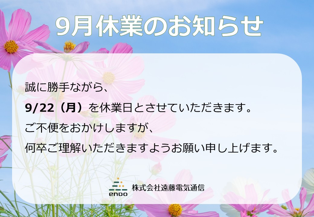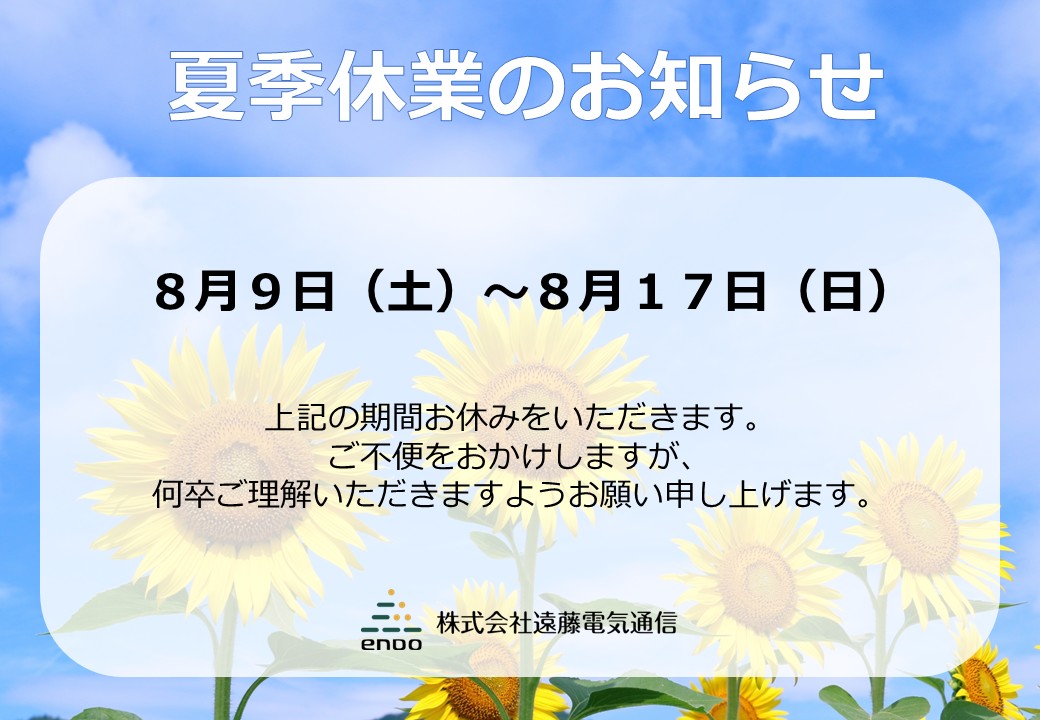 | 2025/06/09 | 夏季休業日のお知らせ |