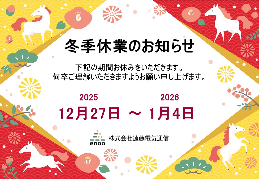 | 2025/12/22 | 冬季休業日のお知らせ |